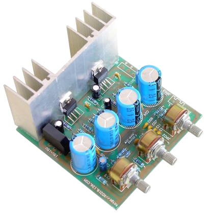 调试:本功放板调试特别简单,电路板焊好电子元件后,要仔细检查电路板有无焊错的地方,特别要注意有极性的电子零件,如电解电容,桥式整流堆,一旦焊反即有烧毁元器件之险,请特别注意。接上变压器,放大器的输出端先不接扬声器,而是接万用电表,最好是数显的,万用表置于DC*2V档。功放板上电注意观察万用电表的读数,在正常情况下,读数应在30mV以内,否则应立即断电检查电路板。若电表的读数在正常的范围内,则表明该功放板功能基本正常,最后接上音箱,输入音乐信号,上电试机,旋转音量电位器,音量大小应该有变化,旋转高低音旋钮,音箱的音调有变化。